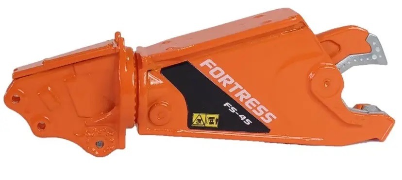 Cizallas para chatarra FORTRESS FS45-R naranjas con soporte de pluma para excavadoras de hasta 25 toneladas