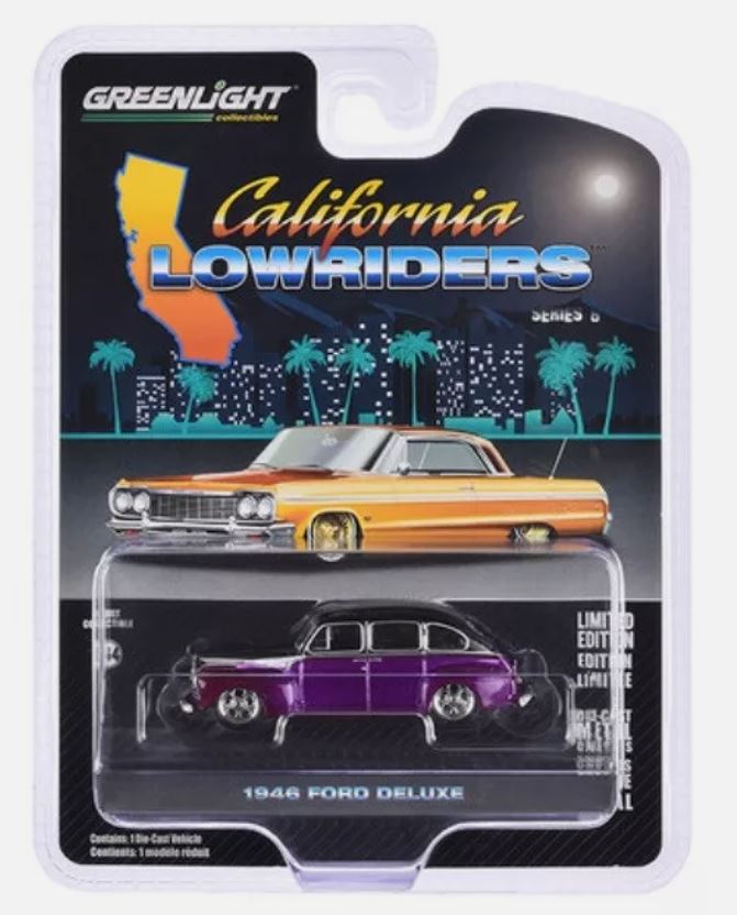 FORD Deluxe 1946 púrpura de la serie CALIFORNIA LOWRIDERS en blister