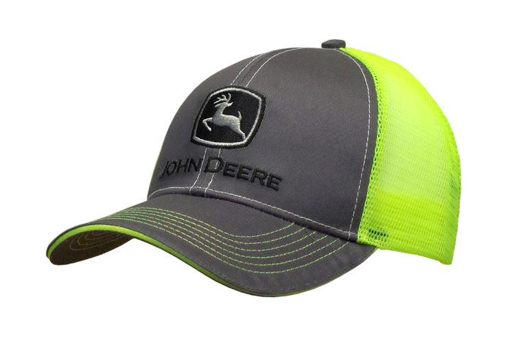 Gorra John Deere gris y amarilla fluorescente con parte trasera de malla