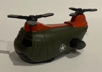 Helicóptero de fricción de color caqui y naranja