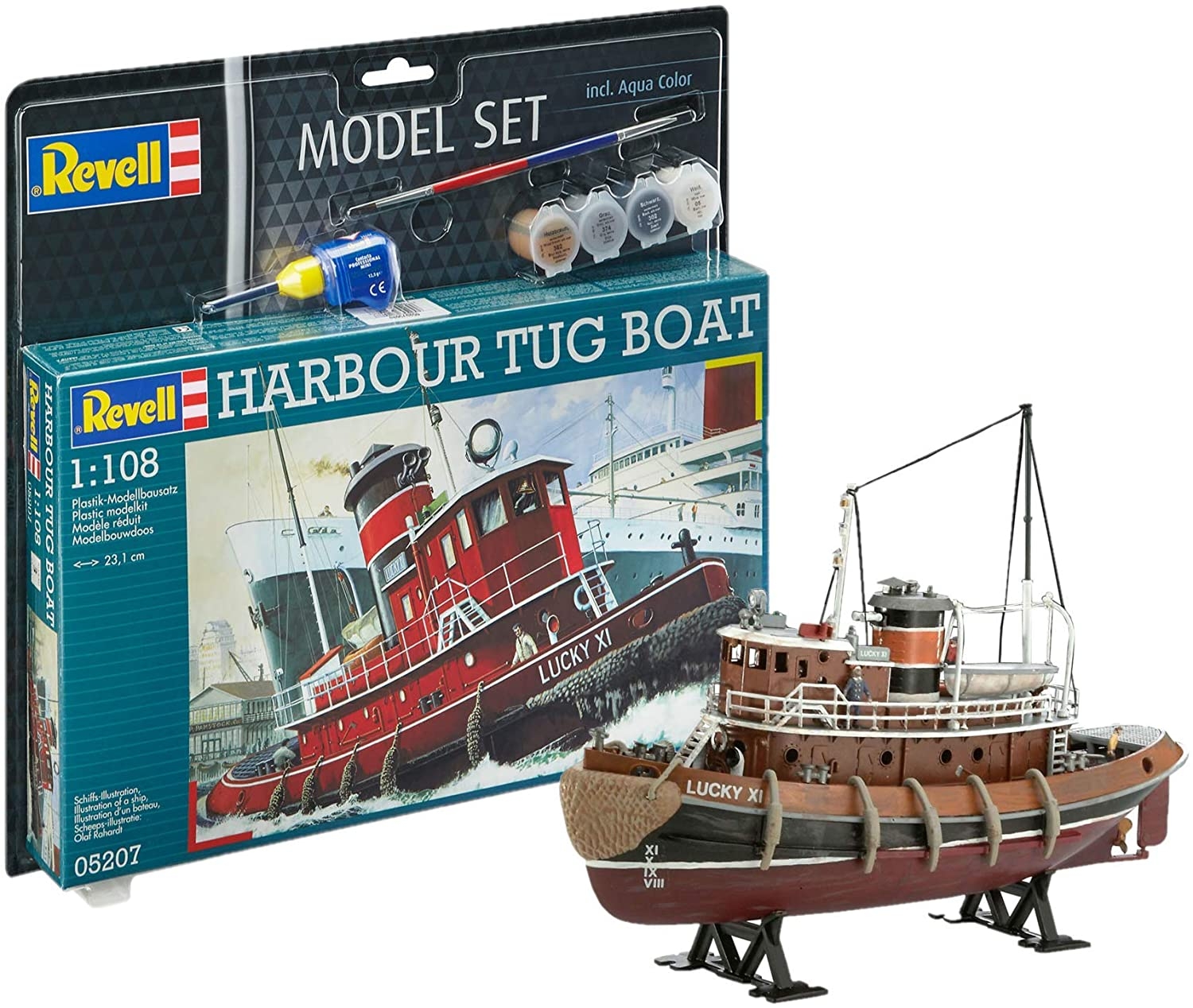 Maqueta de remolcador de puerto con pintura para montar