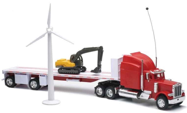 PETERBILT 389 6x4 radiocontrol con remolque de 2 ejes; pala y aerogenerador Escala: 1/32