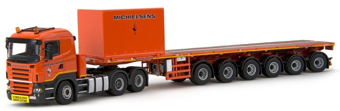 SCANIA R5 6x4 con transporte de balasto semiplano de 6 ejes para grúa con contenedor MICHELSEN