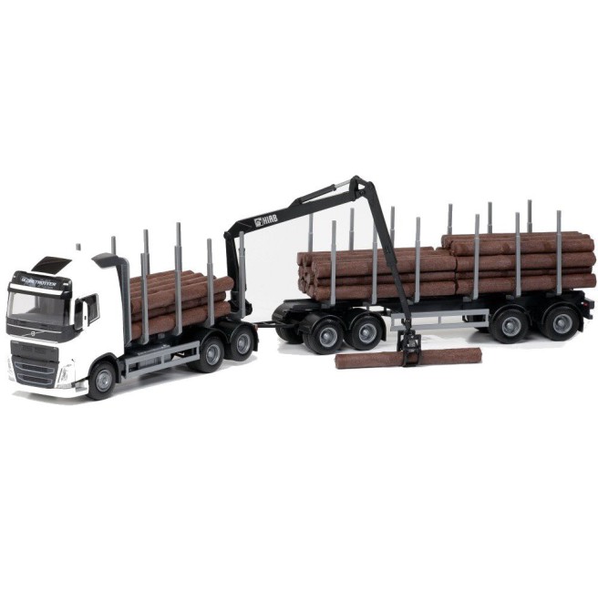VOLVO FH16 6x4 blanco con Dolly y remolque de 2 ejes de transporte de madera